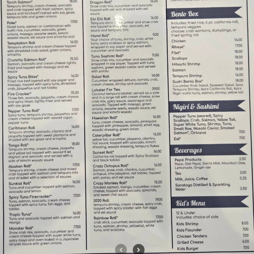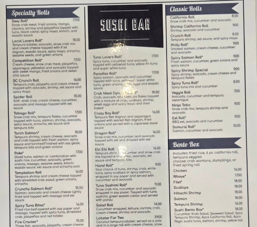 The sushi is magnificent 👌 😋 Just tried our 4th one and plan on trying all. Yummy. Had the Competition roll and Pepper Tuna roll. So different but both fresh and just spicy and crispy enough